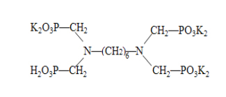 HMDTMPA•K6 is soluble in water, it is a good scale inhibitor for calcium sulfate, suitable for use in situation of high pH value and high alkaline. HMDTMPA•K6 can be used for water treatment in boilers and RO membrane treatment.