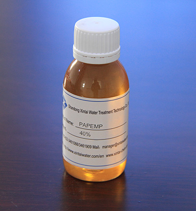 PAPEMP is a new kind of water treatment agent. PAPEMP has high chelation and dispersion effects, high value of calcium tolerance, and good scale inhibition effects. PAPEMP can be used as scale and corrosion inhibitor in circulating cool water system and oilfield refill water system in situations of high hardness, high alkali and high pH value. PAPEMP has excellent scale inhibition ability to calcium carbonate, calcium sulfate and calcium phosphate. PAPEMP can efficiently inhibit the formation of silica scale, stabilize metal ions such as Zn, Mn and Fe.