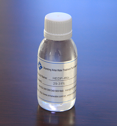 The solid HEDP•Na4 is white powder, soluble in water, easily deliquescence, suitable for use in winter and freezing districts. It is a kind of organophorphonic acid scale and corrosion inhibitor, can form stable complex with Fe, Cu and Zn ions, it can dissolve the oxides on metal surface, it has good scale and corrosion inhibition effect under 250℃.
